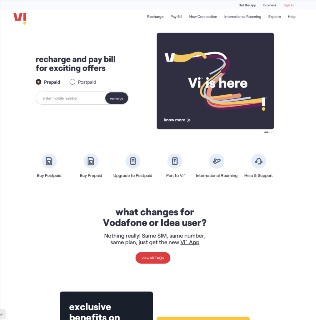 We led the end-to-end design of their digital ecosystem — spanning mobile apps, websites, marketing communications, and more. Our focus was on translating complex telecom journeys into intuitive and human-centered experiences that truly connect with India’s diverse user base. From streamlining recharge flows and account management to crafting scalable design systems and personalized emailers, our work helped shape how over 20 million Indians engage with Vi every day.